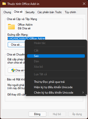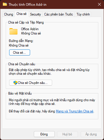Trong cửa sổ Thuộc tính (Properties) Click vào nút Chia sẻ (Share)