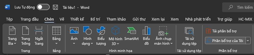 Chọn Tab Chèn (Insert) sau đó Click vào nút Phần bổ trợ của tôi (My Add-ins)