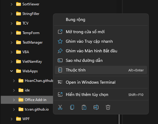 Click phải vào thư mục chứa file XML đã tạo từ bước 1. Sau đó chọn Thuộc tính (Properties)