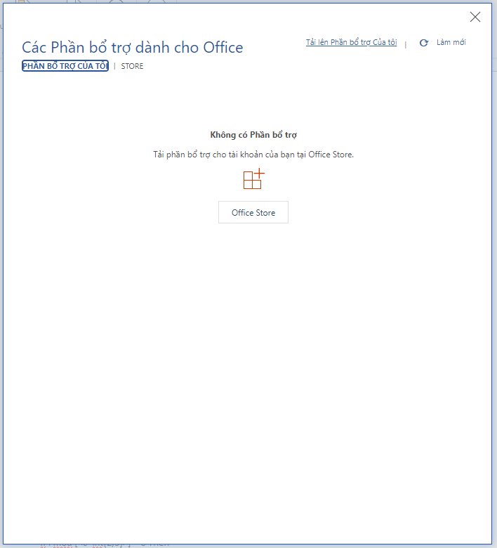 Trong hộp thoại Bổ trợ dành cho Office (Office Add-ins) chọn Tải lên phần bổ trợ của tôi