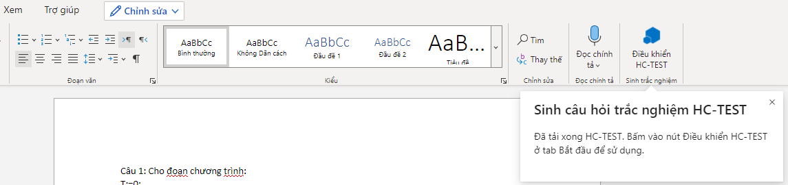 HC–TEST là một trình bổ trợ (Add-In) của MS-Word vì thế nên việc cài đặt và nâng cấp hơi khác so với một phần mềm chạy độc lập. Việc cài đặt HC–TEST đối với bản trực tuyến cá nhân được thực hiện như sau: